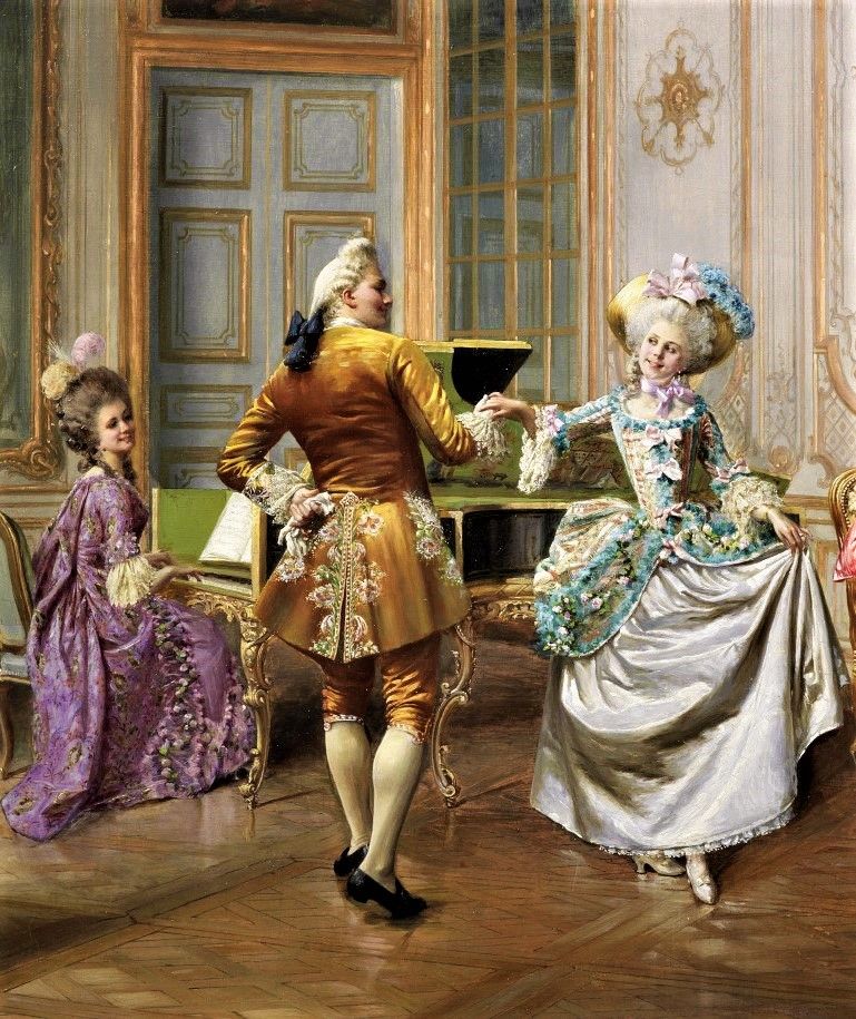 No contexto da música da corte de espírito galante , a dança que ganhava a preferência nos salões era o minuet ou minueto, com passos miúdos, grande leveza e evoluções graciosas. Esta forma musical de origem dançante refletia a vida aristocrática marcada pelas normas de etiqueta, a elegância exterior, as mesuras, a frivolidade e o luxo. Época de Luis XV, em que as danças aristocráticas continuavam em voga.